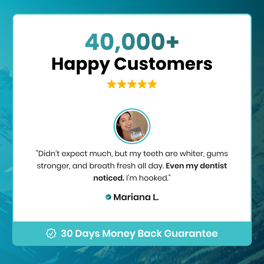 Your teeth are stronger, gums healthier, and breath fresher than ever. With continued use, your oral microbiome stays balanced, preventing plaque and gum disease.
