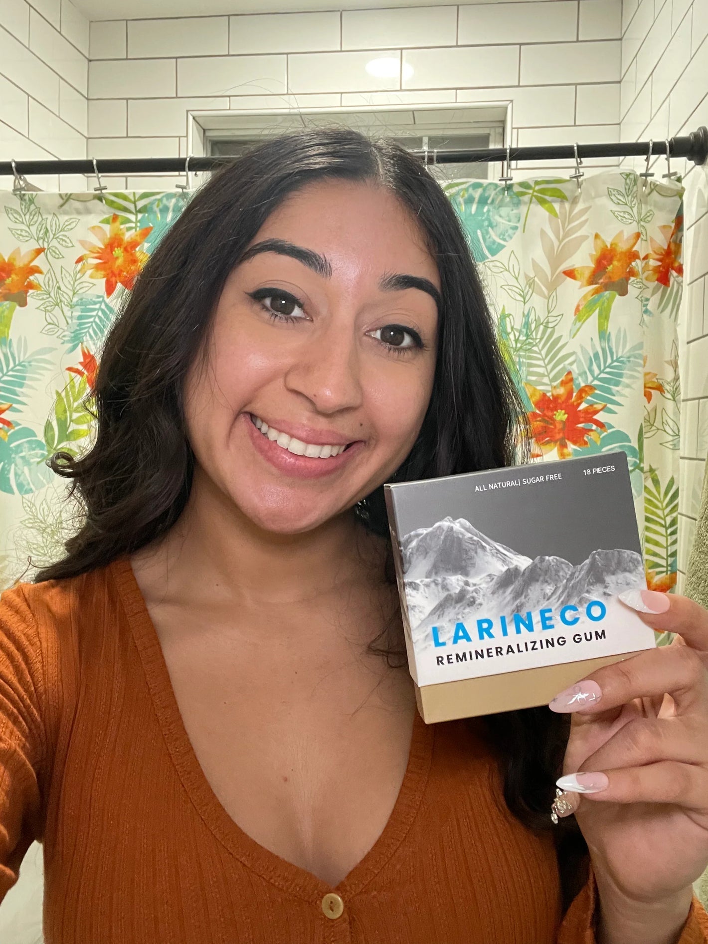 Larineco’s remineralizing power also naturally lifts stains, leaving you with a whiter, brighter smile after a few weeks!